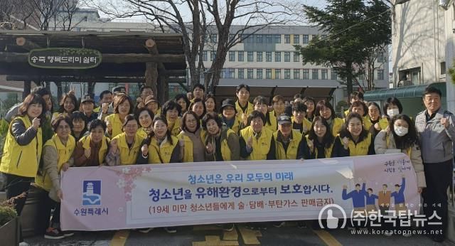 ㈜한국탑뉴스 차복원 기자 | 수원시 장안구는 지난 21일, 신학기를 맞아 건전한 청소년 문화를 조성하기 위하여 송죽동 일대에서 청소년 유해환경 계도 및 선도 캠페인을 실시했다.
