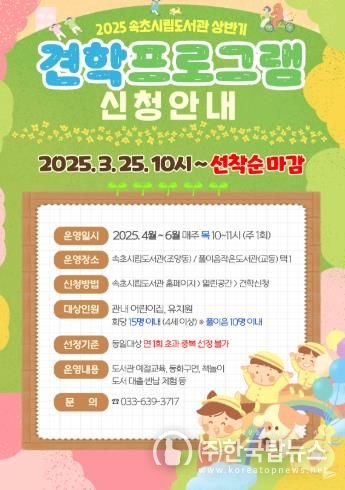 ㈜한국탑뉴스 차복원 기자 | 속초시립도서관에서 2025년 상반기 견학 프로그램을 운영한다.