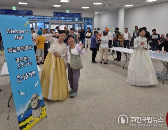 이날 환영행사에서는 전통한복을 차려입은 환영단이 관광객들을 반갑게 맞이하며 인사를 건넸다. 또한 퓨전 국악 공연과 제주 기념품(삼다수) 제공 등 친근한 제주의 정겨운 환영 분위기를 전달하며 관광객들의 큰 관심을 끌었다.