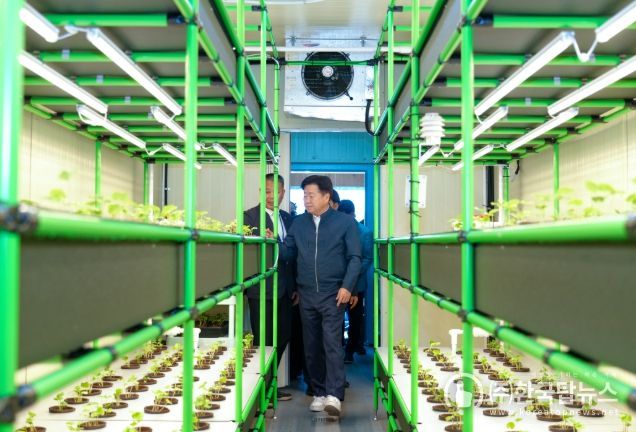 오영훈 지사는 “컨테이너 식물공장을 보면서 과학과 인공지능(AI), 디지털 분야의 기술이 뒷받침되지 않으면 고부가가치 농업으로 발전할 수 없다는 점을 다시 한번 확인했다”며 “푸드테크와 식물공장 등 스마트농업이 제주 농업 전반으로 확산될 수 있도록 최선을 다하겠다”고 강조했다.