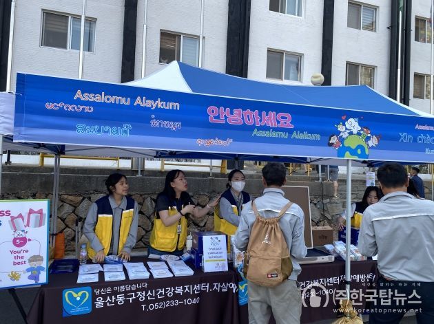 ㈜한국탑뉴스 송행임 기자 | 울산동구정신건강복지센터는 지난 6월 18일 오후 5시 30분부터 HD현대미포 근로자 대상으로 마음건강 캠페인을 실시했다.