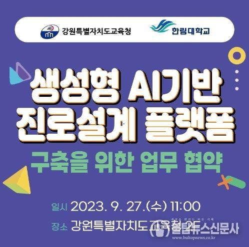 불탑뉴스 기자 | 강원특별자치도교육청은 27일 한림대학교와 AI 기반 진로설계 시스템 강화를 위한 업무협약을 체결했다.