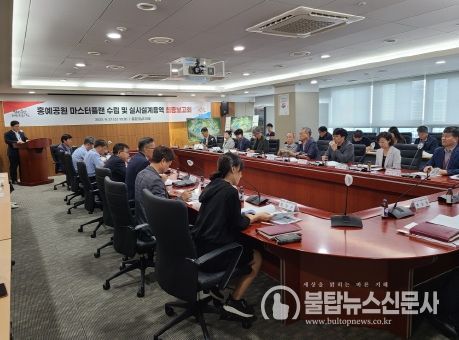 불탑뉴스 기자 | 충남도는 27일 도청 중회의실에서 내포신도시 홍예공원 기본계획(마스터플랜) 수립 용역 최종보고회를 열고, 전문가 자문 사항과 실·국별 쟁점 및 현안을 최종 검토했다.