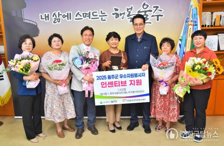 ㈜한국탑뉴스 송행임 기자 | 울산 울주군에서 30여년간 자원봉사자로 활동 중인 박원숙씨가 (사)울주군자원봉사센터가 지정하는 ‘2025년 우수자원봉사자 봉사왕’에 선정돼 지역사회의 귀감이 되고 있다.