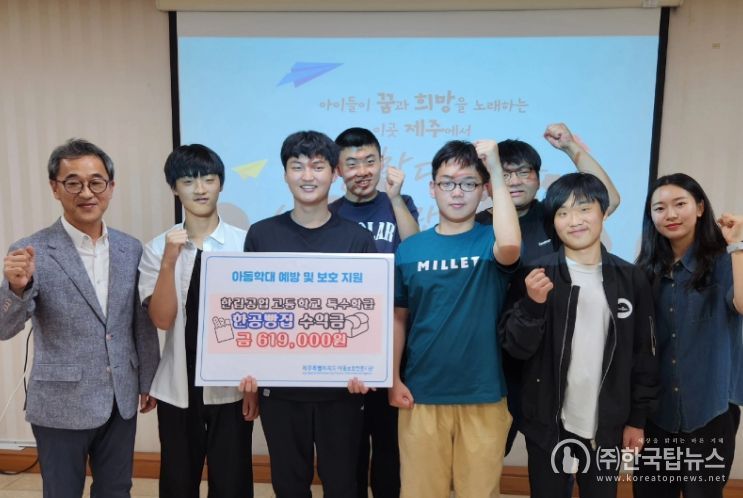㈜한국탑뉴스 차복원 기자 | 제주도교육청 한림공업고등학교는 20일 교내에서 운영한 ‘일일 빵집’의 판매 수익금을 학대 피해 아동의 보호와 회복을 위한 활동에 사용될 수 있도록 제주특별자치도아동보호전문기관에 기부했다.