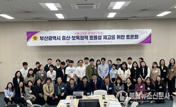 불탑뉴스 기자 | 부산광역시의회 최영진 의원(사하구1, 행정문화위원회) 대표로 있는 의원연구단체 ‘저출산대응 정책연구모임’에서 마련한 저출산 문제에 대한 토론회가 지난 4일 시의회 2층 대회의실에서 개최됐다.