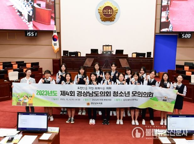 불탑뉴스 기자 | 경상남도의회는 10월 4일과 10월 5일 양일간 경상남도의회 본회의장에서 성지여자고등학교, 창원상남초등학교 학생들을 대상으로 올해 마지막 청소년 모의의회를 진행했다.
