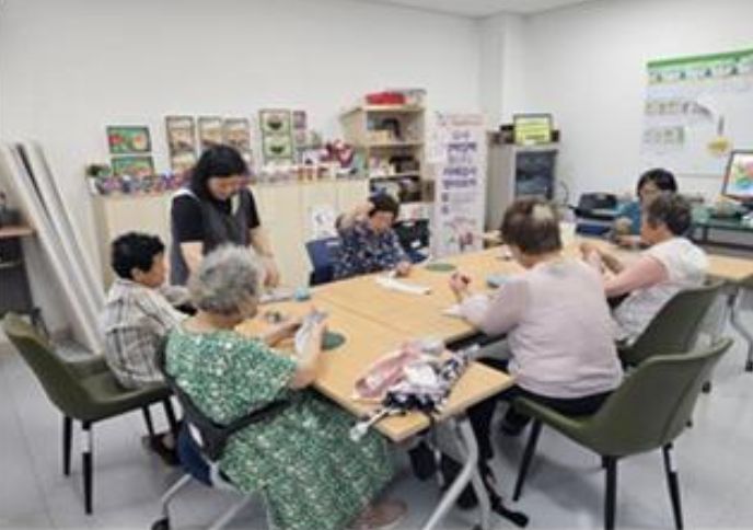 행복나눔쉼터는 지난 3월부터 6월까지(4개월) 주 2회씩 운영됐으며, 어르신들의 인지기능 향상과 정서적 안정을 위한 냅킨아트 가방·도어벨 만들기, 스칸디나비아 모스 공예, 포슬린 아트(접시 및 컵 그리기) 등 다양한 인지자극 프로그램과, 체조 및 근육강화 운동도 병행하여 어르신들의 신체적 자신감을 높였다.