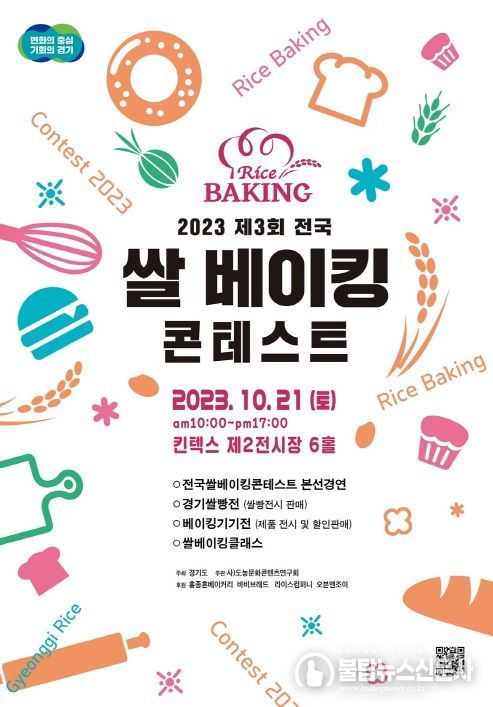 경기도는 10월 21일 고양시 킨텍스 제2전시장 6홀에서 제3회 전국쌀베이킹콘테스트와 경기쌀빵전(展)을 개최한다고 8일 밝혔다.