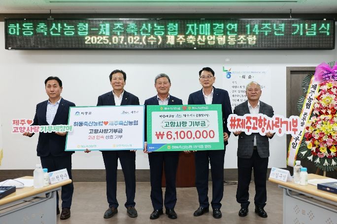 이에 앞서 제주축산농협은 지난 4월 경남 하동시의 조속한 산불 피해 복구를 돕기 위해 고향사랑기부금 1,100만 원을 기탁한 바 있다.