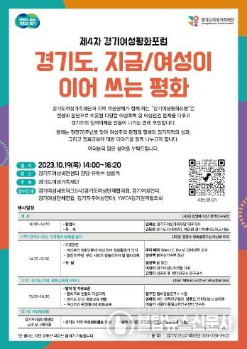 불탑뉴스 기자 | 경기도여성가족재단이 19일 오후 2시 수원 경기여성비전센터 강당에서 2023 경기여성평화포럼 ‘경기도, 지금/여성이 이어 쓰는 평화’를 개최한다.