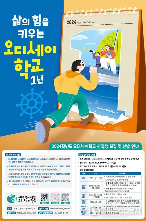 불탑뉴스 기자 | 서울특별시교육청은 한국형 에프터스콜레인 오디세이학교(교장 조용수)가 2024학년도 총 5곳의 캠퍼스에서 100명의 신입생을 모집한다고 11일 밝혔다.