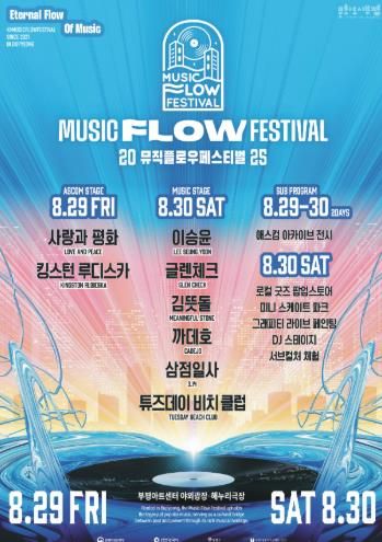 ㈜한국탑뉴스 한민석 기자 | 부평구 문화재단이 오는 8월 29일부터 30일까지 양일간 부평아트센터 일대에서 '2025 뮤직 플로우 페스티벌(MUSIC FLOW FESTIVAL)'을 개최한다.