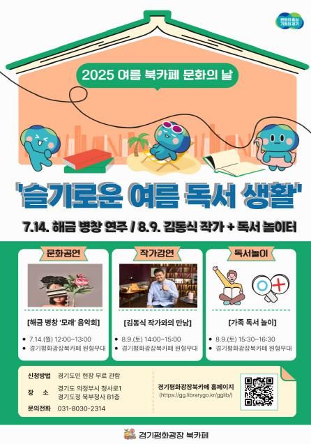 ㈜한국탑뉴스 한민석 기자 | 경기도는 7월 14일과 8월 9일, 경기도청 북부청사 경기평화광장 북카페에서 ‘여름 특집 문화의 날’을 개최한다.