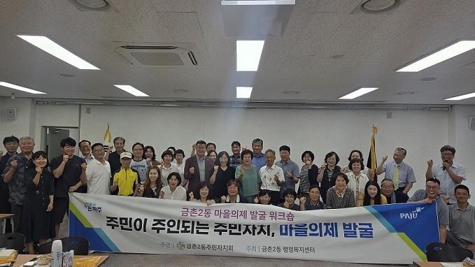 ㈜한국탑뉴스 한민석 기자 | 금촌2동 주민자치회는 지난 8일 금촌2동 행정복지센터에서 주민자치위원 40여 명이 참석해 ‘주민총회 준비를 위한 마을의제 발굴 워크숍’을 성황리에 개최했다.