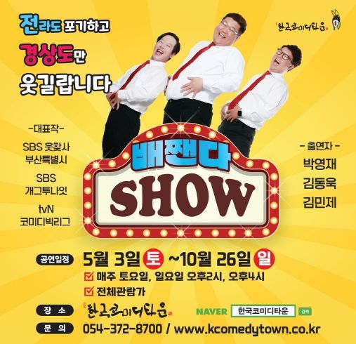 지역 유머와 경상도 사투리를 살린 '배짼다 쇼'는 매회 색다른 에피소드와 콘셉트로 "1시간이 공중분해 됐다", "웃음 장벽 높은 남자친구가 울면서 웃었다" 등 관객들의 뜨거운 호평을 받으며 깊은 공감을 이끌어내고 있다.