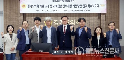 불탑뉴스 기자 | 경기도의회 의회운영연구회는 13일 경기도의회 의회운영위원회 회의실에서 ‘자치입법권 활성화를 위한 '경기도의회 기본 조례' 등 자치입법 전부개정 개선방안 연구’ 착수보고회를 개최했다.