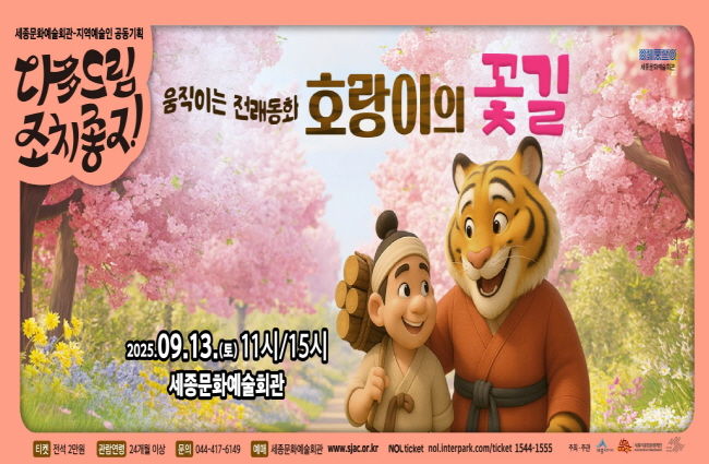 9월 13일에는 협동조합 손에손에가 ‘움직이는 전래동화 호랑이의 꽃길’을 선보인다. 빠르게 변하는 시대 속에서 인간 관계와 생명의 소중함을 되새기게 하는 전래동화 어린이 연극으로, 관람은 24개월 이상부터 가능하고 티켓 가격은 전석 2만원이다.