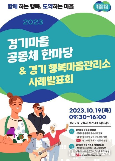 불탑뉴스 기자 | 경기도가 오는 19일 수원시 팔달구 옛 경기도청사 신관에서 마을공동체 활동가와 행복마을관리소 지킴이들이 한자리에 모여 소통하는 ‘2023 경기마을공동체 한마당 & 경기 행복마을관리소 사례발표회’를 개최한다.