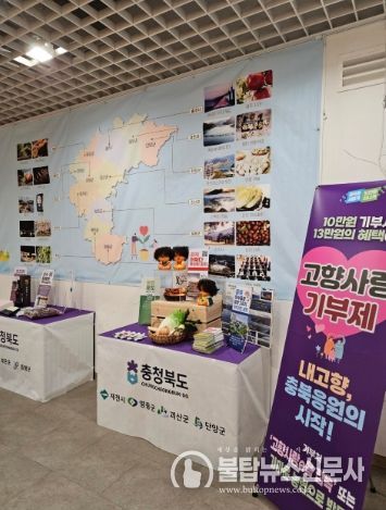 상생상회 지하 전시관에서는 충북 고향사랑기부제 답례품 전시회를 열어 서울시민과 출향민을 대상으로 고향사랑기부제 동참을 독려한다.