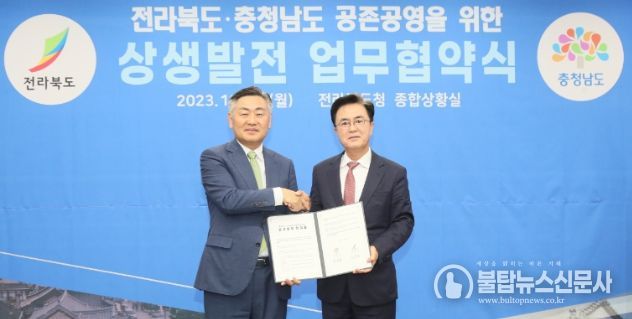 불탑뉴스 기자 | 전라북도와 충청남도가 양 지방정부의 도민 삶의 질 향상을 위한 지속 가능한 공존공영을 위한 5개 과제 추진에 맞손을 잡았다.