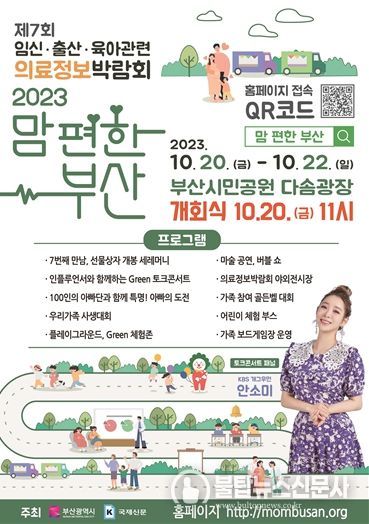 부산시는 오는 20일부터 22일까지 3일간 부산시민공원 다솜광장에서 임신·출산·육아 의료정보박람회 '2023년 맘 편한 부산'을 개최한다고 밝혔다.
