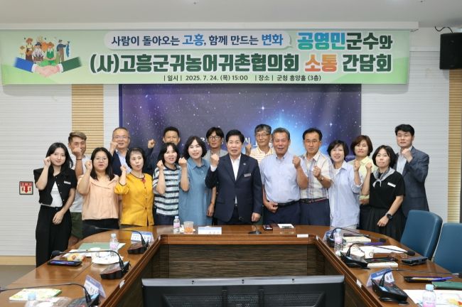 ㈜한국탑뉴스 한기석 기자 | 고흥군은 지난 24일 군청 흥양홀에서 공영민 군수와 (사)고흥군 귀농어귀촌협의회(회장 박강석) 집행부 간의 소통 간담회를 개최했다고 밝혔다.