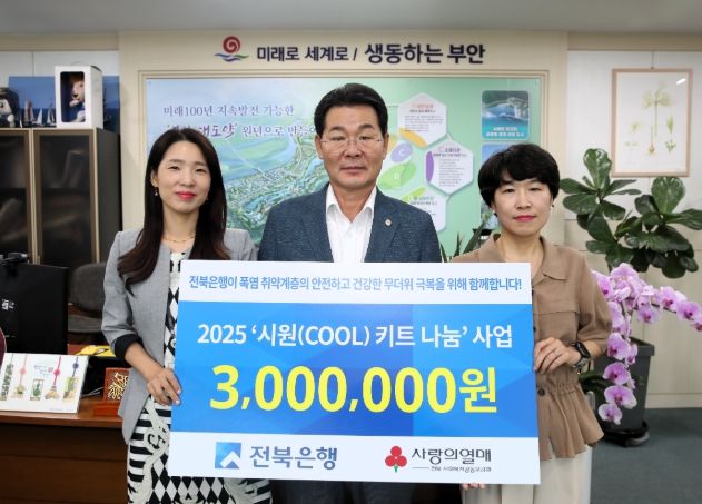 ㈜한국탑뉴스 한기석 기자 | 전북은행 부안지점이 지난 24일 부안군을 방문하여 시원(COOL)키트 60박스(300만원 상당)를 기탁했다.