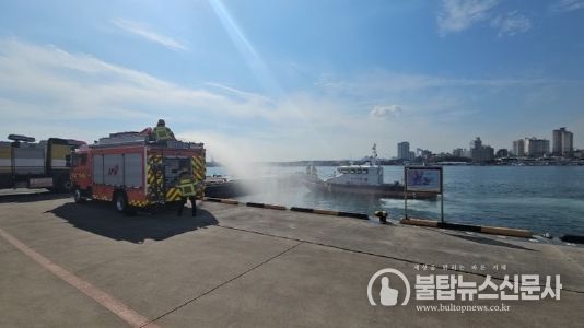 훈련 중점내용은 신고접수 및 초동조치, 화재확산방지를 위한 인근 선박 분리 조치, 화재진압 장비 착용 교육, 화재진압 대응 절차 등 선박 화재 시 신속한 현장 활동이 가능할 수 있도록 기본적인 교육‧훈련으로 진행됐다.