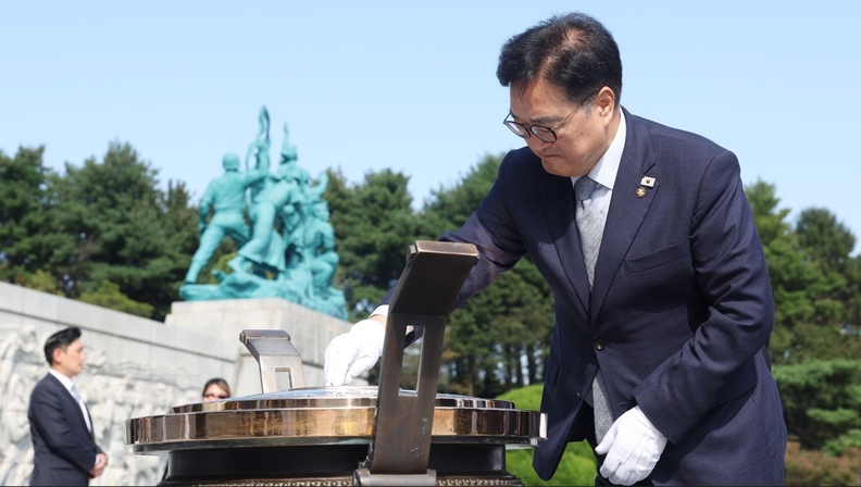 우원식 국회의장은 1일(수) 오후 국립대전현충원을 찾아 현충탑과 홍범도장군 묘역에 참배했다.