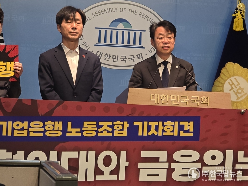- 박홍배·한창민 의원과 공동 기자회견… “금융위 묵묵부답, 행장 공석 장기화” 비판