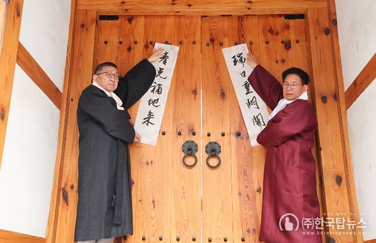 박 구청장은 행사에 앞서 한복 두루마기를 착용한 뒤, 마포문화원장 등 참석자들과 함께 입춘축을 광흥당 대문에 게첩하고 기념촬영을 진행했다.