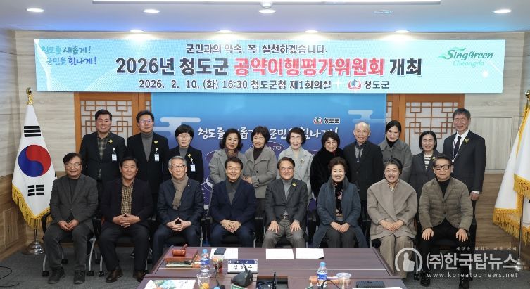㈜한국탑뉴스 송행임 기자 | 청도군은 지난 10일 군청 제1회의실에서 ‘2026년 청도군 공약이행평가위원회’를 개최하고 민선 8기 공약사항에 대한 추진 상황을 점검했다.