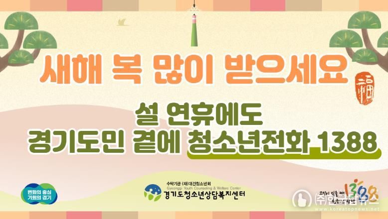 ㈜한국탑뉴스 송행임 기자 | 경기도는 설 당일을 포함해 14~18일 연휴 기간에도 위기 청소년 심리 상담 서비스 ‘청소년전화1388’을 24시간 운영한다.