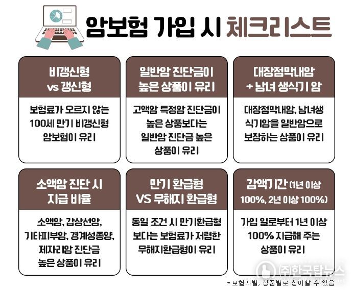 보다 자세한 가입 조건이나 적정 진단금액 설정은 비갱신형 암보험 비교사이트를 활용하여 여러 회사의 상품을 실시간으로 보험료 비교도 해볼 수 있으며, 다양한 정보를 비대면으로 주말까지 전문가와 상담이 가능하므로 3대진단비 등 종합건강보험 가입 시 편리하게 이용할 수 있다.