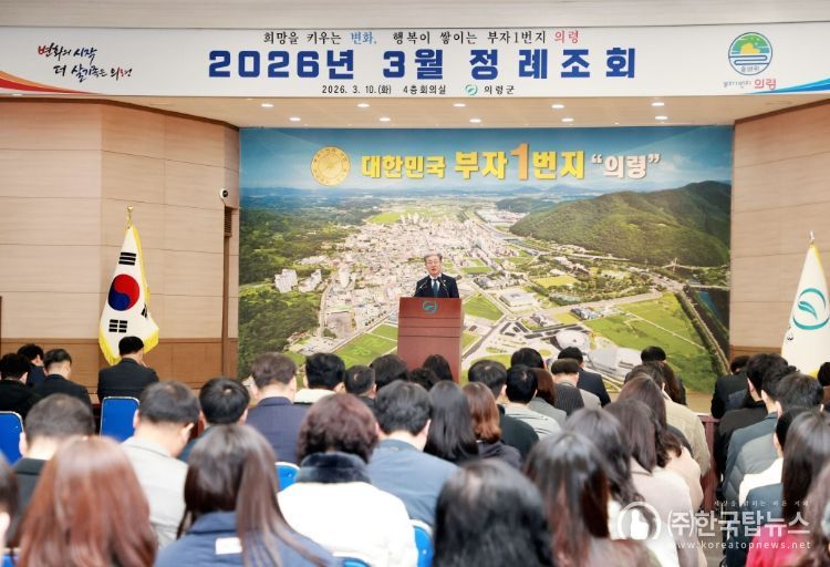 ㈜한국탑뉴스 송행임 기자 | 오태완 의령군수가 정례조회에서 군민의 걱정을 덜어주는 ‘민생안심 3책(三責)’을 강조하며 군정 방향을 공유했다.