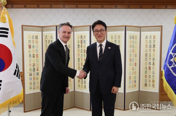 ㈜한국탑뉴스 차복원 기자 | 김민석 국무총리는 3월 9일 오전 정부서울청사에서 패트릭 존슨(Patrik Jonsson) 인터내셔널사업 총괄 대표 등 일라이릴리앤컴퍼니 관계자와 면담을 가졌다.