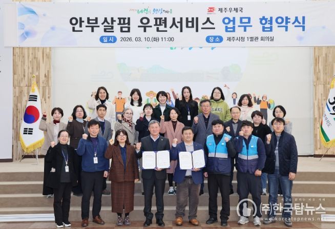 ㈜한국탑뉴스 차복원 기자 | 제주시는 3월 10일 시청 1별관 회의실에서 제주우체국(국장 오달규)과 ‘안부살핌 우편서비스’ 업무 협약을 체결했다.