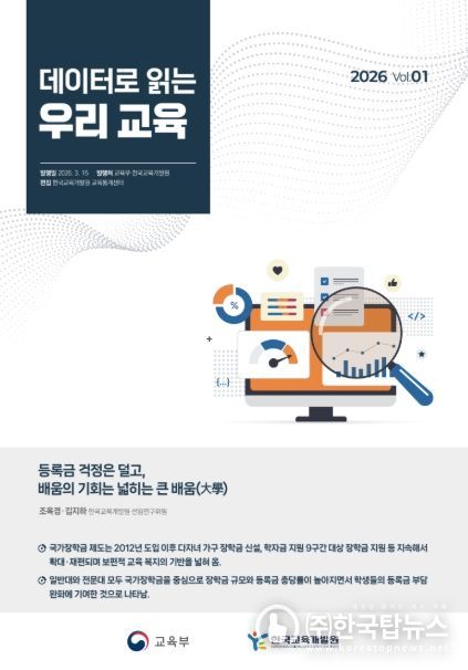 ㈜한국탑뉴스 고화랑 기자 | 교육부와 한국교육개발원(원장 고영선)은 3월 15일, 그동안 공표해 온 각종 교육 관련 통계와 공시자료를 주제별로 묶어 국민의 눈높이에서 해설한 「데이터로 읽는 우리 교육」을 발간한다.