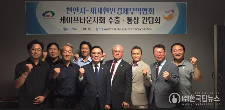 ㈜한국탑뉴스 차복원 기자 | 천안시는 지난 18일(현지시각) 남아프리카공화국 케이프타운에서 세계한인경제무역협회(World-OKTA) 케이프타운지회와 수출통상 간담회를 개최했다.