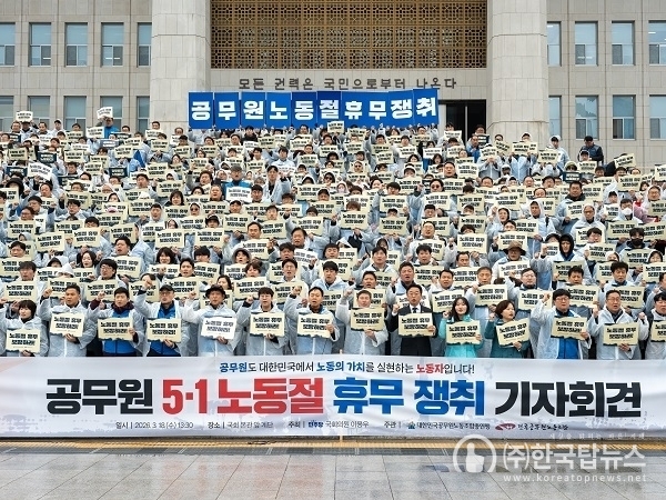 이어 “노동절 공휴일 지정은 노동 존중 사회로 나아가기 위한 최소한의 제도적 선언”이라며 “정부와 국회는 공무원 노동권을 가로막는 차별적 제도를 즉각 개선해야 한다”고 촉구했다.