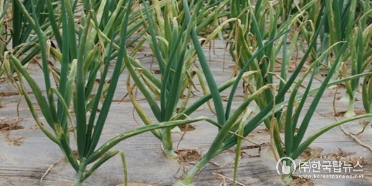 ㈜한국탑뉴스 한기석 기자 | 영광군은 최근 잦은 강우와 큰 일교차의 영향으로 양파에서 노균병이 관찰되기 시작함에 따라 농가의 철저한 예찰과 초기 방제를 당부했다. 최근 기상 여건은 잠복 중인 병원균의 확산 가능성을 높이고 있어, 안정적인 양파 생산을 위해 병 발생 초기에 적용 약제를 활용한 신속한 대응이 필요한 상황이다.