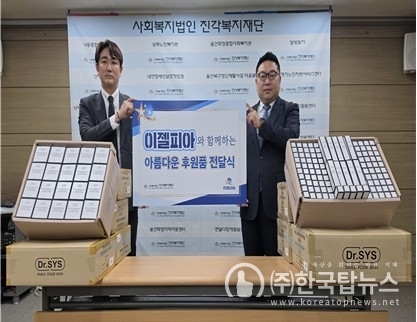 2026년 4월 13일, 이젤피아 주식회사의 정특래·최국상 공동대표가 사회복지법인 진각복지재단에 3억 원 상당의 자사 화장품 ‘Dr.SYS’ 등 생활용품을 후원하며 따뜻한 나눔을 실천했다.