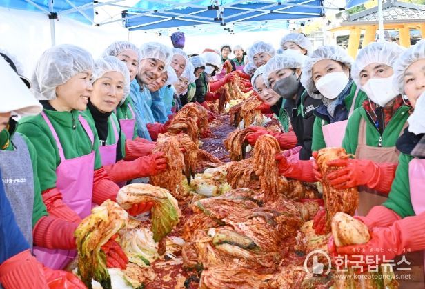한국탑뉴스 송행임 기자 | (사)울산중구새마을회(회장 정태식)가 11월 26일과 27일 이틀 동안 중구청 민원실 앞 광장에서 ‘2023년 따뜻한 겨울 김장나누기’ 행사를 열었다.
