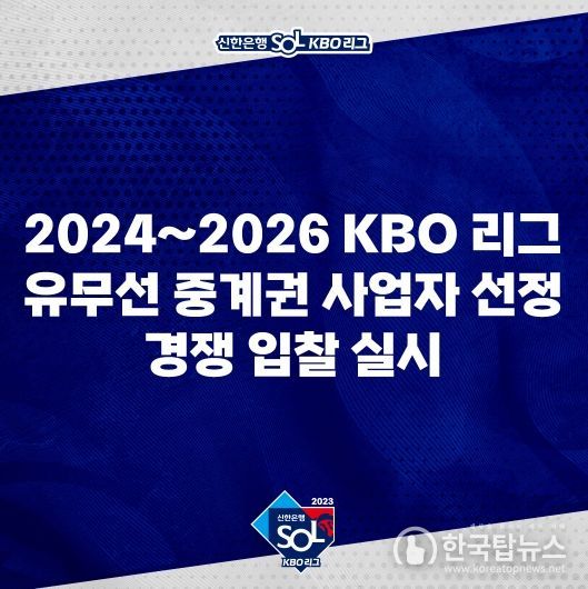 한국탑뉴스 유용식 기자 | KBO(총재 허구연)의 마케팅 자회사인 KBOP는 2024~2026 KBO 리그 유무선 중계권 사업자의 객관적이고 공정한 선정을 위한 경쟁 입찰을 실시한다.