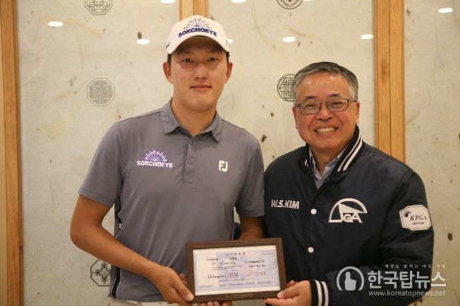 선수들을 대표해 김백준은 “올 시즌부터 KPGA 투어에서 활동할 수 있게 된 것만으로도 보람찬데 이렇게 첫 공식 상금을 기념할 수 있는 액자를 받아 ‘루키’로서 뿌듯하고 감동”이라는 소감을 전했다.