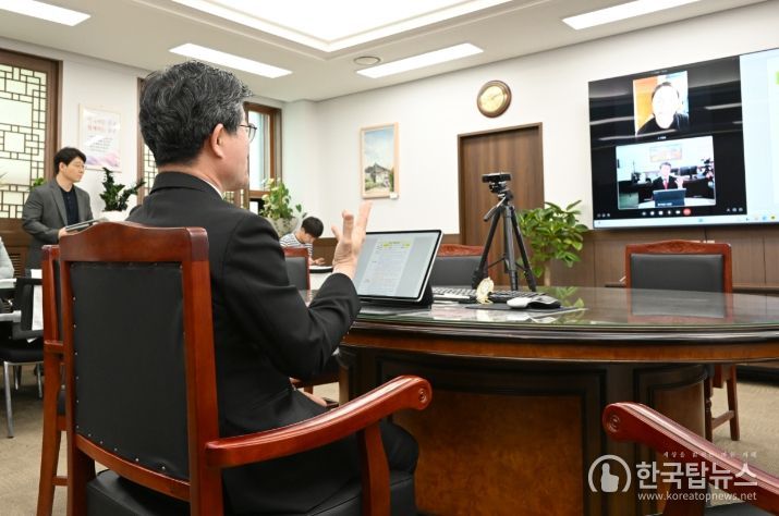 24일 오후 2시 구청장실에서 진행된 '중구청장의 시시콜콜(callcall) 데이트'에서 동국대 사회복지학과 이승수 학생이 영상통화로 질문했다.