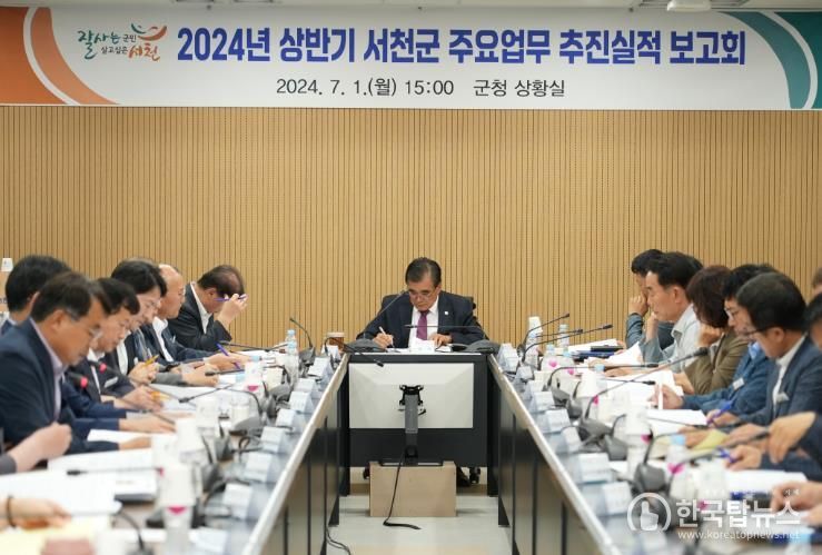 한국탑뉴스 송행임 기자 | 서천군은 지난 1일 군청 상황실에서 김기웅 군수를 비롯한 부군수, 각 부서장 등이 참석한 가운데, 민선8기 출범 2주년을 맞이하여 2024년 주요업무 추진상황 보고회를 개최했다.