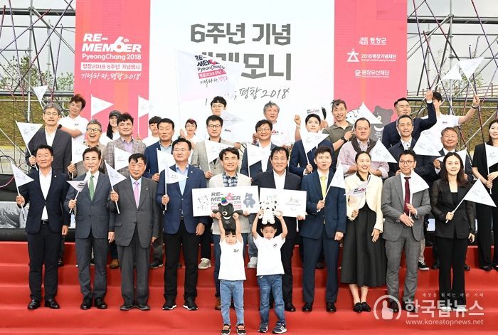 2018 평창 6주년 기념식은 쇼마칭 퍼포먼스팀을 선두로 성공의 주역인 자원봉사자 대표단과 2018년생 어린이들, 수호랑 반다비 인형이 무대에 차례로 등장하여 이번 행사의 슬로건인 ‘기억하자, 평창 2018’을 외치는 세레모니로 마무리됐다.