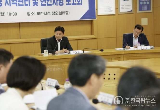 (주)한국탑뉴스 한민석 기자 | 부천시는 지난 15일 시청 창의실에서 3개 구청장 및 37개 동장이 참석한 가운데 시장 주재로 2024년도 2분기 동 지역관리 및 현안사항 보고회를 개최했다.